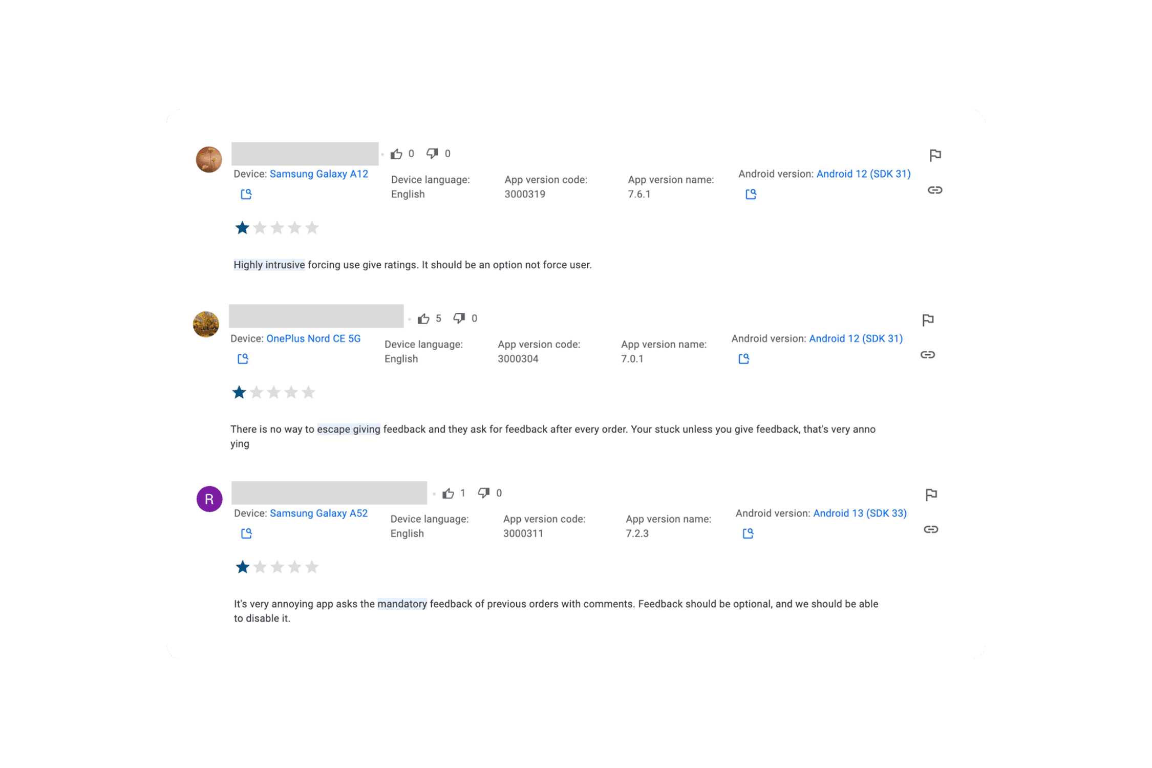 App reviews analysis → mined 10k+ comments for recurring pain themes.
