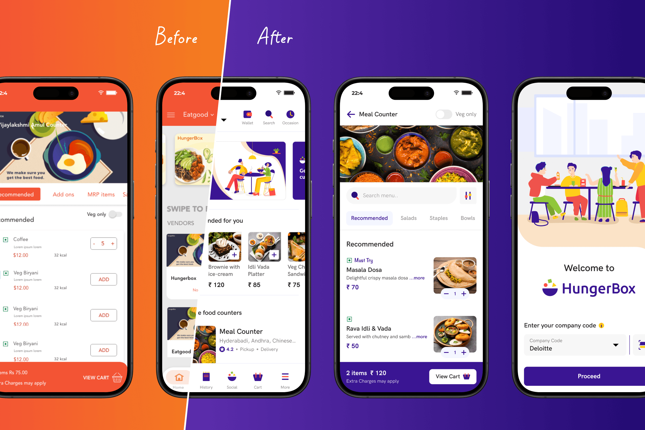 When I joined HungerBox in late 2019, the consumer app had already been in the wild for three years. It did its job: let users order food in corporate cafeterias. But design? Almost nonexistent.