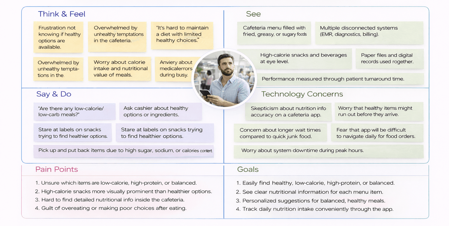 Cafeterias in corporate India are designed for efficiency, not awareness. You stand in line, scan a menu, order fast, eat fast. What you don’t know? How many calories that biryani has, or if the paneer butter masala you eat daily pushes your cholesterol.